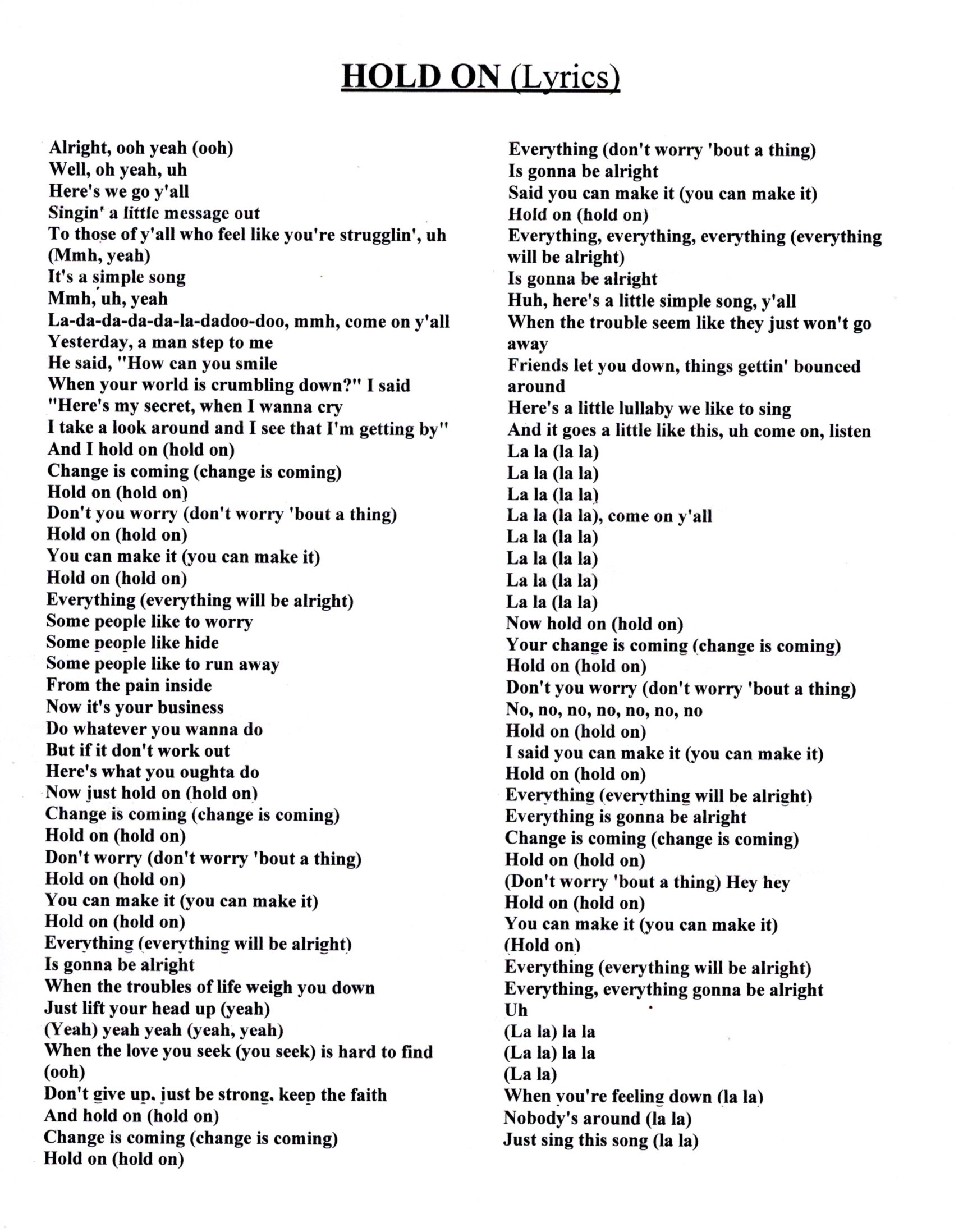 YouTube address for Hold On - https://youtu.be/XvnDJv-j8xw
